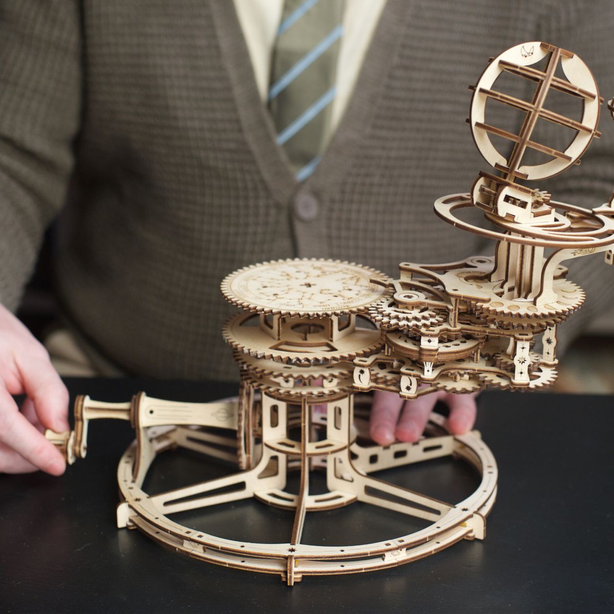 Crafted from eco-friendly composite wood, the Mechanical Tellurion is a medium-difficulty project designed to assemble without glue or special tools. The 249 precisely laser-cut pieces fit together seamlessly, ensuring a smooth and enjoyable build over five hours. Detailed step-by-step instructions, available in 11 languages, guide you through the process. Once assembled, the tellurion is fully adjustable to display the Sun, Earth, and Moon’s positions on any given day. Once complete, you’ll have a working model that beautifully demonstrates the interconnected movements of celestial bodies, all while doubling as an elegant tabletop display.